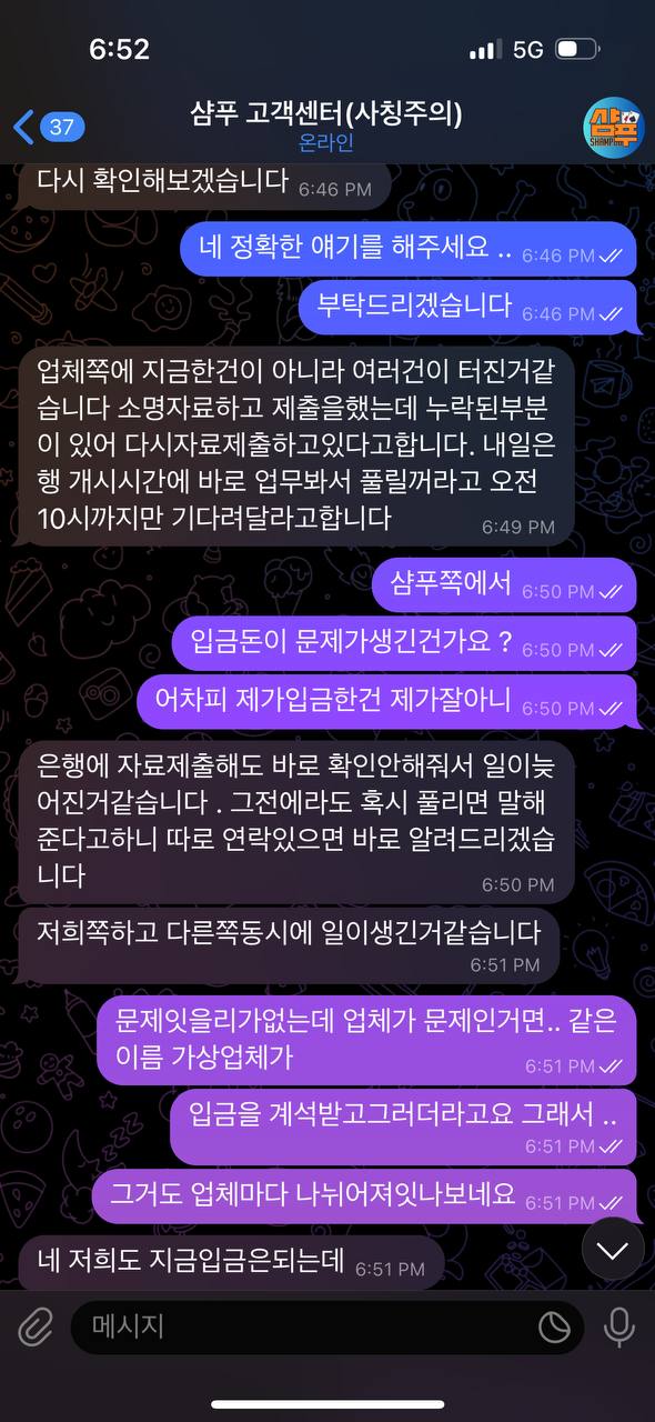 가상계좌 업체에서 지급보류 요청이 걸려있다