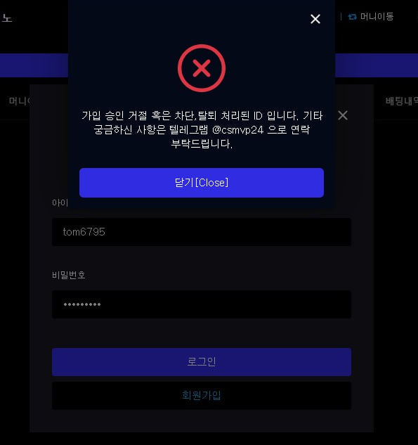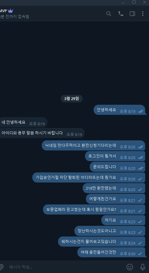 배너보고 가입하고 스포츠 배팅후 자고일어나서 환전누르니 로그인이 튕겨서 문의했더니 먹이네요 요즘도 200만원 가지고 먹튀하는 사이트가 있어서 놀랄뿐입니다 사유가 양방이니 뭐니 하면서 200만원 돌려내주지 않는데 스포츠가 어떻게 양방이됩니까 200만원도 없는 달동네 월세 구멍가게 mvp 쓰는분 없길 바랍니다