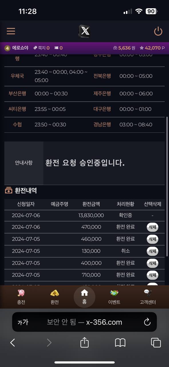 환전 100 ~ 200 정도는 잘 나와서 믿고 계속 이용했는데..