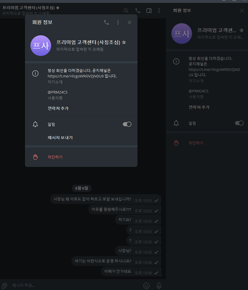 ![]() 오늘 15시쯤에 가입하고 입플 받고 스포츠 3폴더 베팅후 이유불문 베팅취소 후 차단 16:05 전화로 양방 조회된다하여 타사 이용하라함 근데 로얄 조회하니 16:37분에 등록된걸로 확인이 됨 즉 프리미엄가입후 이유도 없이 베팅취소 , 로얄 조회된다 조회는 커녕 지들이 올려놓고 헛소리 시전 위에 대화내용 프리미엄 측에서 대화를 밀어서 그런데 앞전에 장 찢는다고 협박함 이런사이트를 뭘믿고 사용합니까;; 거르세요 프리미엄 댓글 0 |