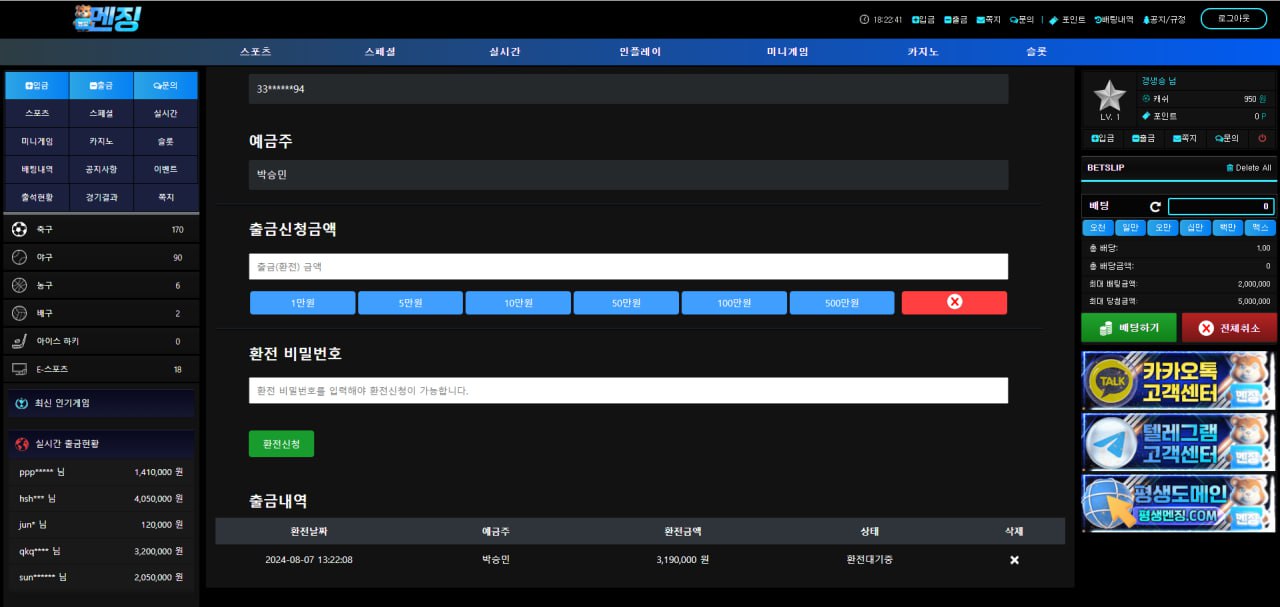 멘징 이용중이시면 출금 버튼 없습니다 출금 누르면 그냥 사정없이 환전 대기만 시킵니다