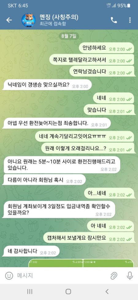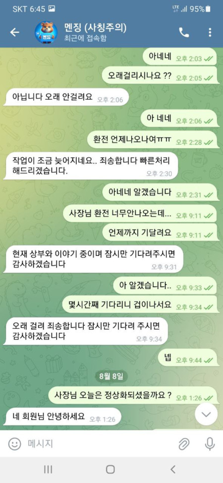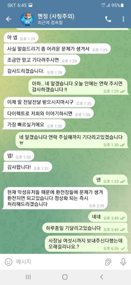 환전장 문제라고 말해놓고 먹튀 하는 악질 입니다 절대 이용하지말아주세요