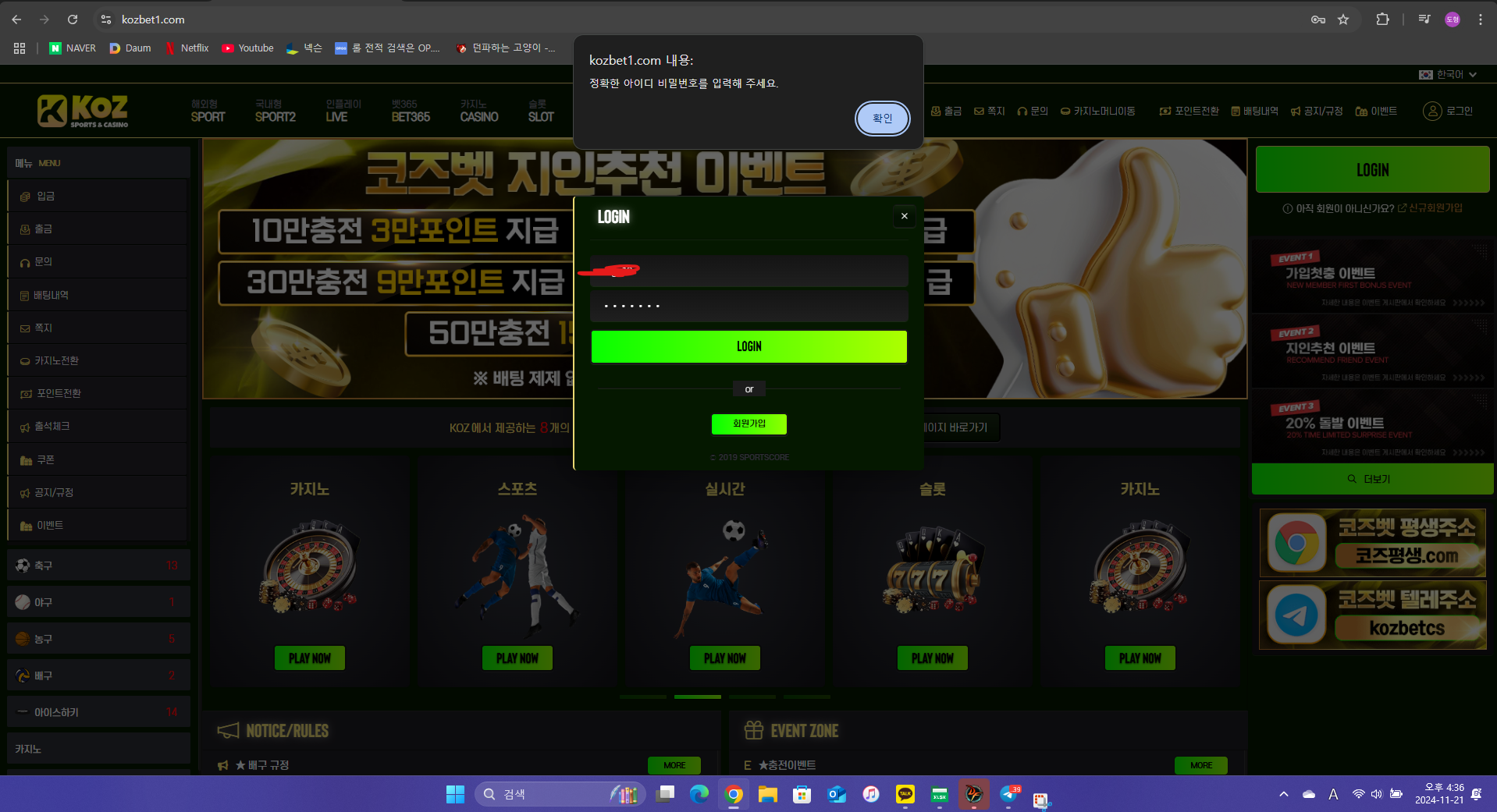 브라우저를 닫더라도 로그인이 계속 유지될 수 있습니다. 로그인 유지 기능을 사용할 경우 다음 접속부터는 로그인할 필요가 없습니다. 단, 게임방, 학교 등 공공장소에서 이용 시 개인정보가 유출될 수 있으니 꼭 로그아웃을 해주세요.