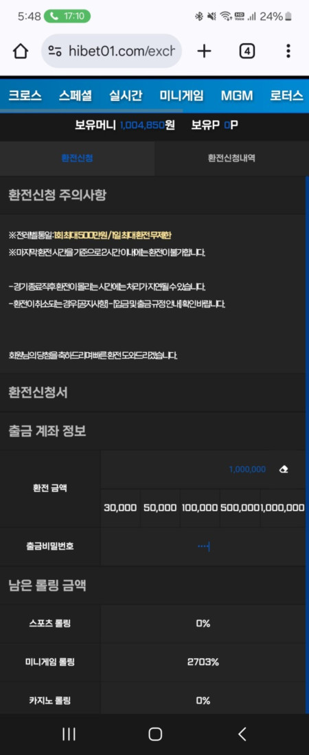 11만충전후 오후5시 50분쯤 100만원 만들어서 환전하려고 하니 8시까지 돌발이벤트라서 환전이 안된다고 8시이후에 환전 달라고해서 알겠다고 하고 기다리면서 다시 별다리1분게임을 하다가 208만원 만들어서 오후8시까지 기다리다가 환전 신청했는데 텔레그램 고객센터랑 총판분은 차단하고 대화 삭제하고 아이디 차단 했는데 ㅋㅋㅋ 너무 악질이네요 ㅋㅋㅋㅋ 진짜 심각합니다..