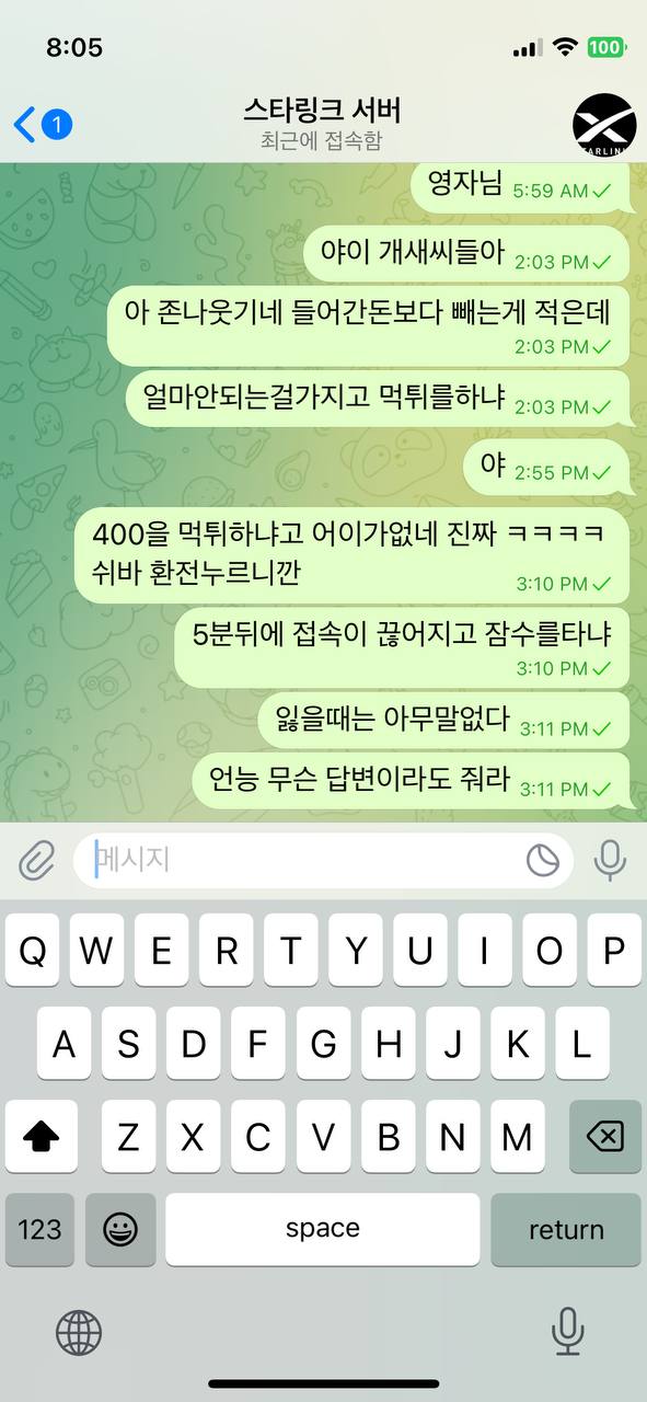 평생주소 : 스타링크.com 평생주소 : 스타링크.kr 국내형 : star-79.com 해외형 : star-50.com 환전 신청 후 잠깐 5분 화장실로 자리비운사이 텔레그렘 대화삭제 후 차단 박혔습니다.