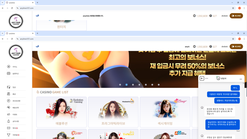 가상계좌쓰는 먹튀 사이트 입니다 첫충30프로인가 로 사람들 꼬셔서 검수한다고 시간끌다 오늘 계정 정지 당했습니다 이유도없어요 어떠한 연락도없습니다 절때 사용하지마세요 저는 일반 회사원이고 양방같은거 할줄도 모릅니다. anytime107.com/