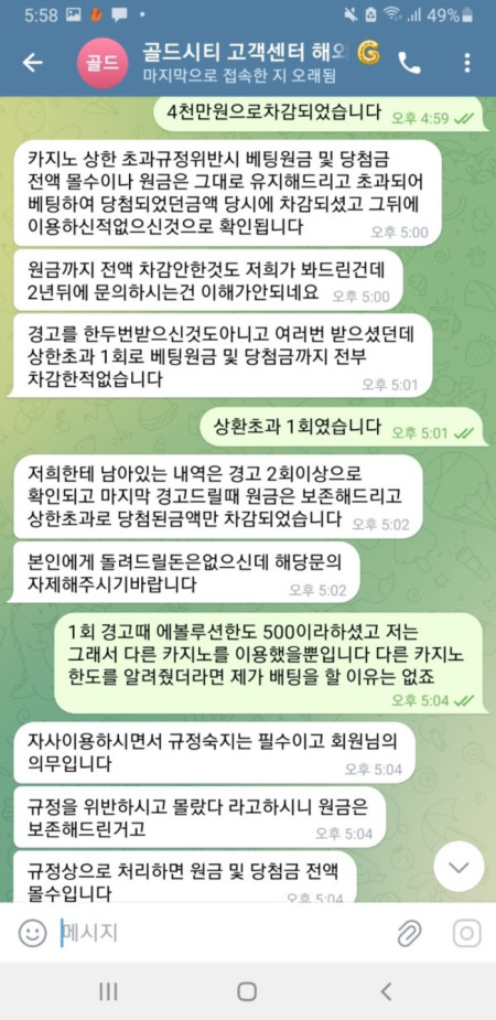 2년전 배팅규정위반으로 당첨금 전액몰수 당했습니다
