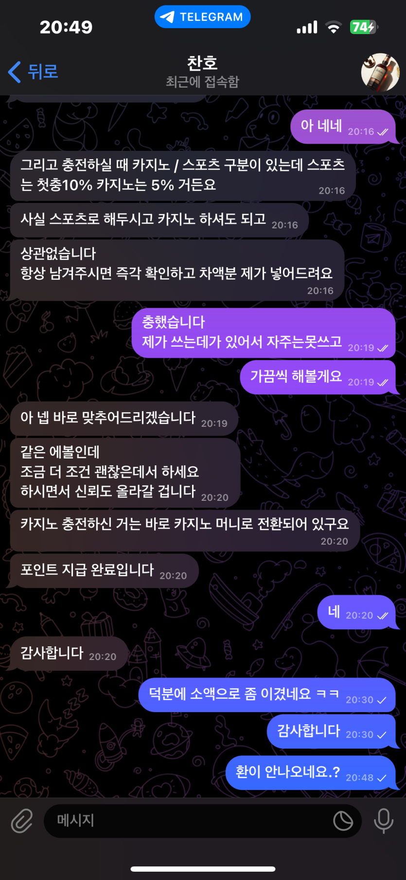 가입 포인트 만원받고 입플 1+1 도 해준다길래 총 3만으로 롤링 400퍼 돌려서 7만듬 이것마저 먹튀 개 병싄 구멍가게 수준 7만도 못내주면 장사왜하냐 ㅋㅋ 꼴에 텔레가족방도 운영중 @chanho77 이 병싄총판아이디