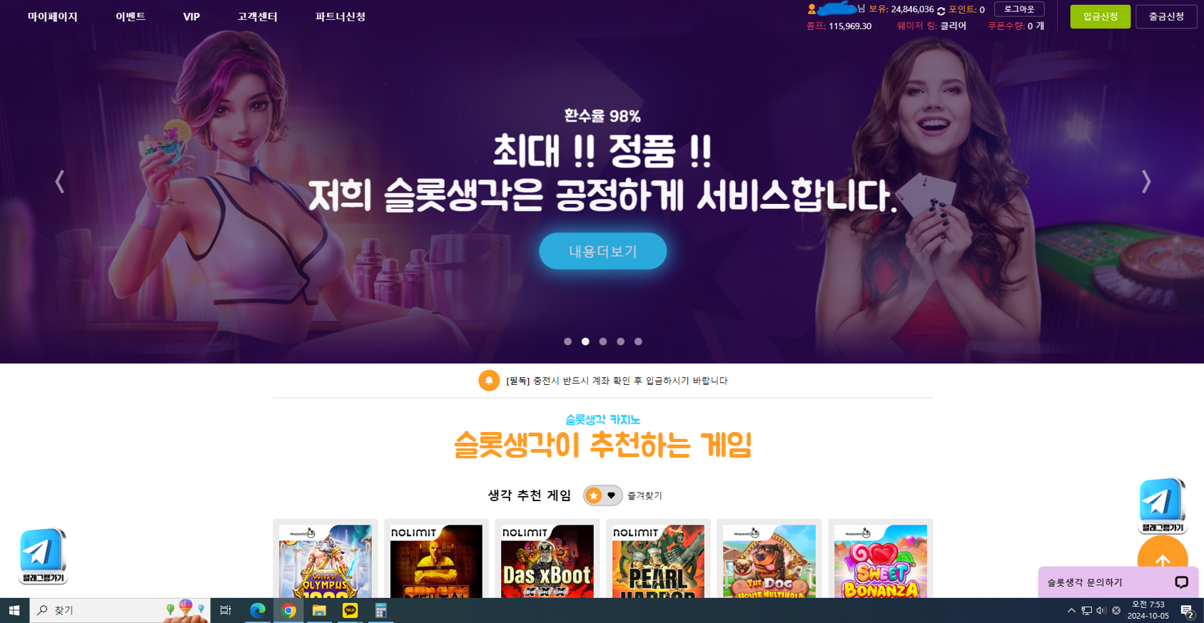 10월 5일에 슬롯생각 사이트에서 어이없는 이유로 먹튀를 당했습니다.