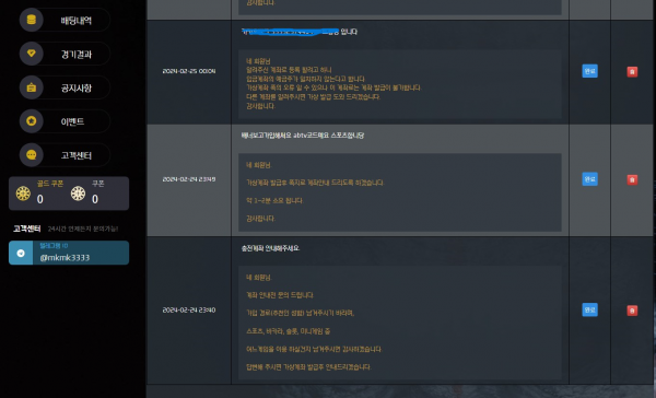 예전배너보고 그대로가입했는데 가입되길래 어디보고가입했냐길래 그대로말하고 계좌주더니 충전하고 배팅하고 당첨되고나서 환전누르니깐 취소놓고 갑자기 또 어디보고가입했냐하길래 불안해서 캡쳐했더니 로그인팅기고 텔레도 안받네요 진짜 개먹싸 표본이네요 ;; 몽키쓰시는분 쓰지마세요