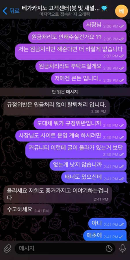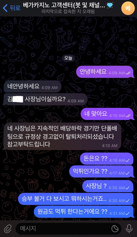 고객센터 차단 잠수 , 먹튀 시전.