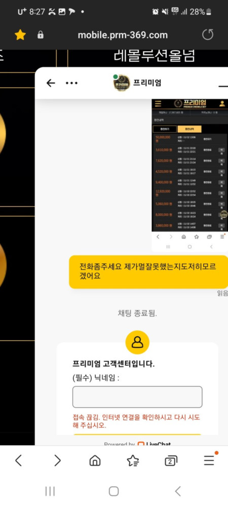 프리미엄에서잘못해놓고 프리미엄에서 저한테자꾸협박을하네요.