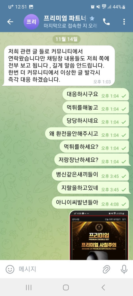 너무억울해서 커뮤니티에 이글을올렸는데 프리미엄사이트에서 텔레그램으로 협박메세지가오더군요