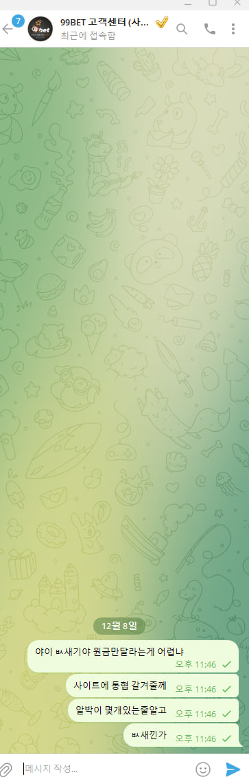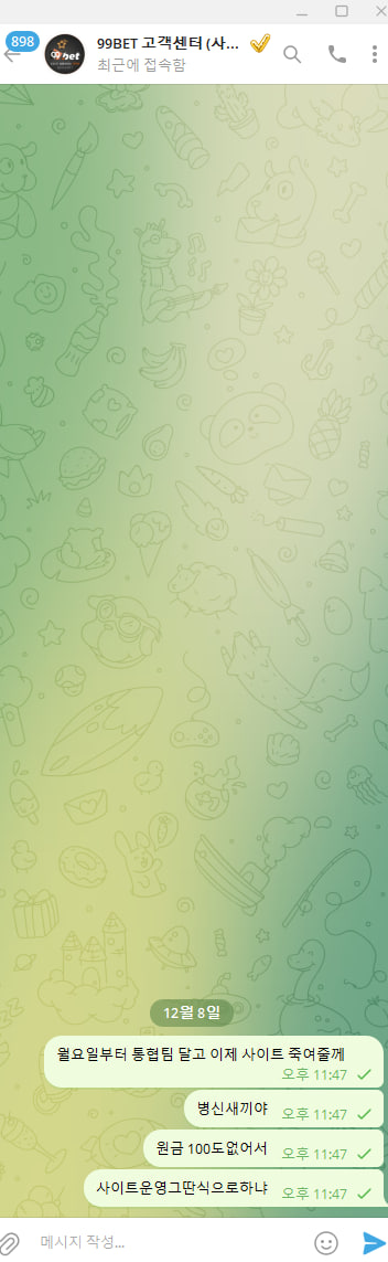 ​아직도 처리를 안해줘서 올립니다 오랜만에 생각나서 문의했는데 텔레그램 10개로 연락해서 연락해도 그냥 대화조차없이 그냥 텔레그램 차단하는 소추 사이트네요 들어가면 추롤만맞고 사용중지하십쇼들