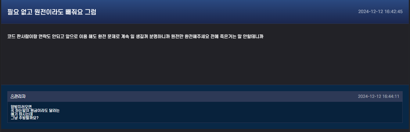 ​글 내리면 환전 해준다고 해놓고 내렸더니 여지 없이 양아치내요 ㅋㅋㅋ​ ​