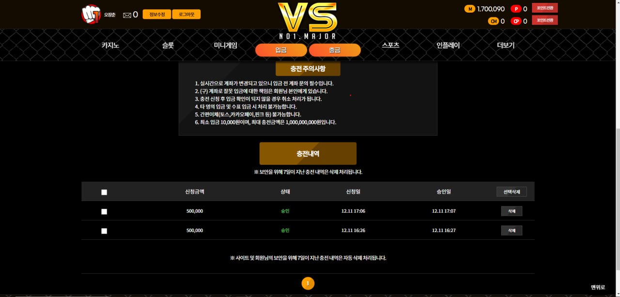 12/11 오랜만에 승부한번 볼려고 VS라는 사이트 가입해서 신규입플받고