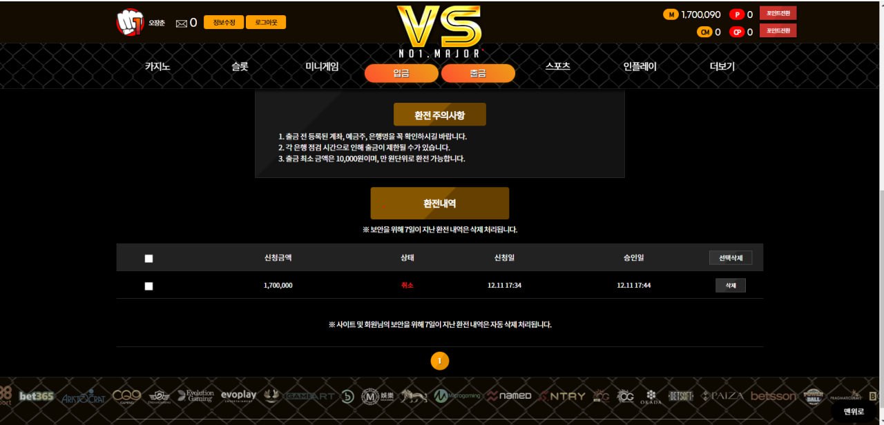 게임이용했습니다 그런데 처음충전한금액 50만원 다잃고 50만원만 딱 더해야지 하는 생각으로 또 충전했는데 170만원까지 올라 원금보다 70만원 더 땃습니다 그런데 참 역시 도박은 보증된곳 에서 하라는이유가 다있네요 환전신청누르니 전화와서 첫환전시 인증해주셔야 환전가능 하다하기에 그냥 텔레그램으로 제 은행내역 보냇더니 하는말이 다른사이트도 사용하시냐고 묻길래 다른사이트 이용은 한다 이말하자마자 양방배팅으로 몰아가면서 170만원 먹튀치네요 그래서 뭐 돈없는 사이트에서 70만원 내어주는거 아까운갑다 싶어 원금이라도 달라하니 줄생각없다고 하네요 CS 잡는놈이 사장인지 직원인지 모르겠지만 장사 그따구로 하지마라 병신들아 70만원도 없음서 무슨 장사한다고