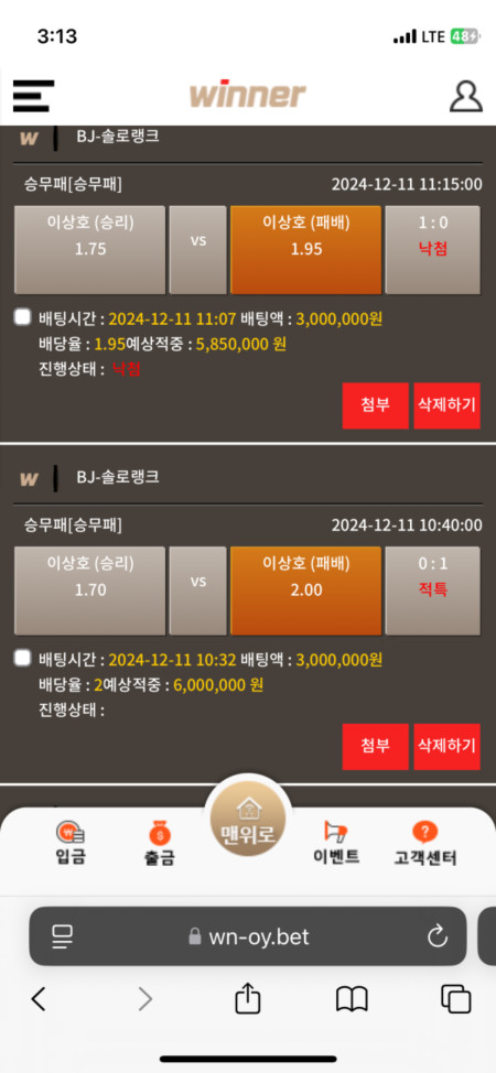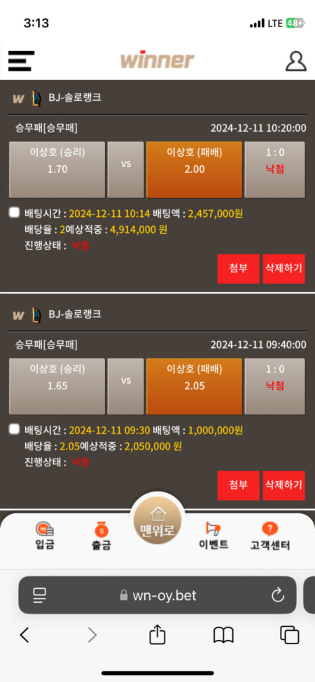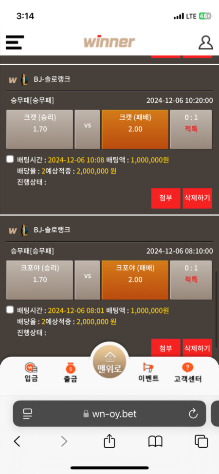 보이시나요 ㅋㅋ 틀리면 낙첨 맞으면 어뷰징이라고 적특시킵니다 위너 개악질 진짜 어뷰징이 뭔지고 모르는새끼들이 어뷰징 거리는데 혹시 이상호 승 걸엇는데 낙첨 맞으신분들 같은 시간대 연락부탁드립니다