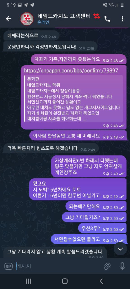 그게 카뱅이라 답이 안 나와서 이의신청 경찰에 도박자수하고