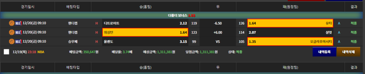 문자로 본인들이 이벤트한다고 이용하래서 충전하고 23:00시쯤 배팅을해놓고 출근길에 보려고 09:00시 경기 3폴더 배팅후 당첨이 됬습니다.