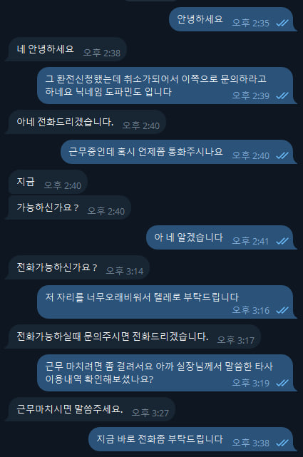 환전취소 -> 유선문의 -> 양방인정하냐 안하냐