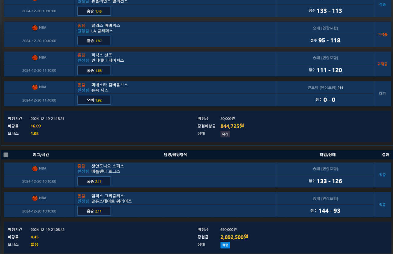 18364 벳센터 131만원 NBA 동시간 원금까지 먹튀 131  bct-03.com  익명35515 2024.12.20 961