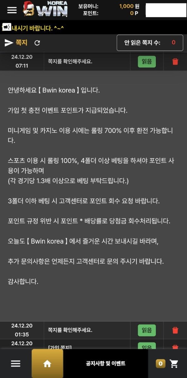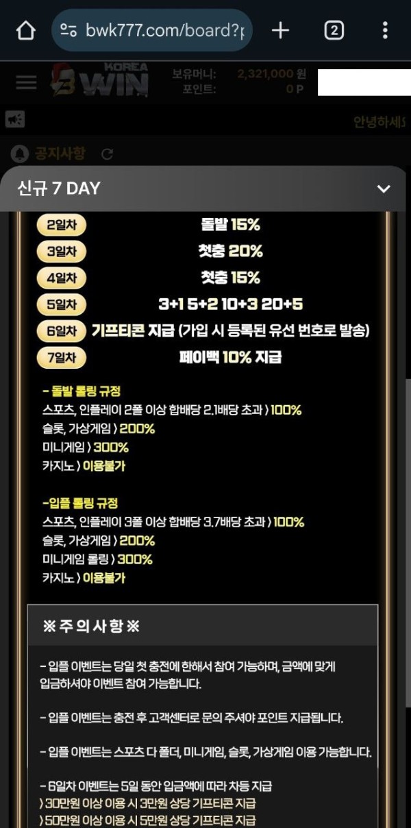배팅하고 당첨 되고 난 후 환전신청을 하니 갑자기 4폴 안쳐서 이벤트 참여가 안된다고 이벤트금액 + 배당 빼고 나머지 금액만 입금해주는 악질사이트입니다 42만3천원 아끼려고 아침부터 규정바꾸는 업체입니다 다시 넣어달라고 그러면 게임 더 하겠다고 하니 환전신청해놓고 무슨소리냐고 억지부립니다 당신들이 환전 신청하라고 해서 지금 못하면 저돈이라도못받을꺼같아서 한거가지고 영업 똑바로하세요 423000원 아껴서 얼마나 부자되는지 함 보게요