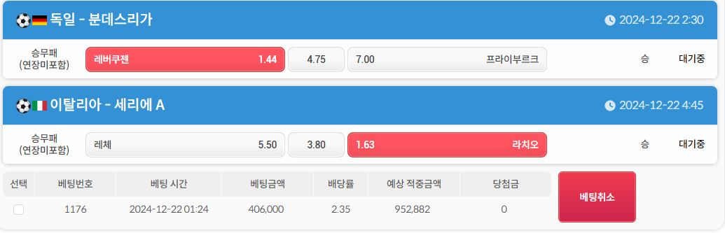 마지막 배팅내역이구 빅리그 국내경기위주로만 배팅했습니다