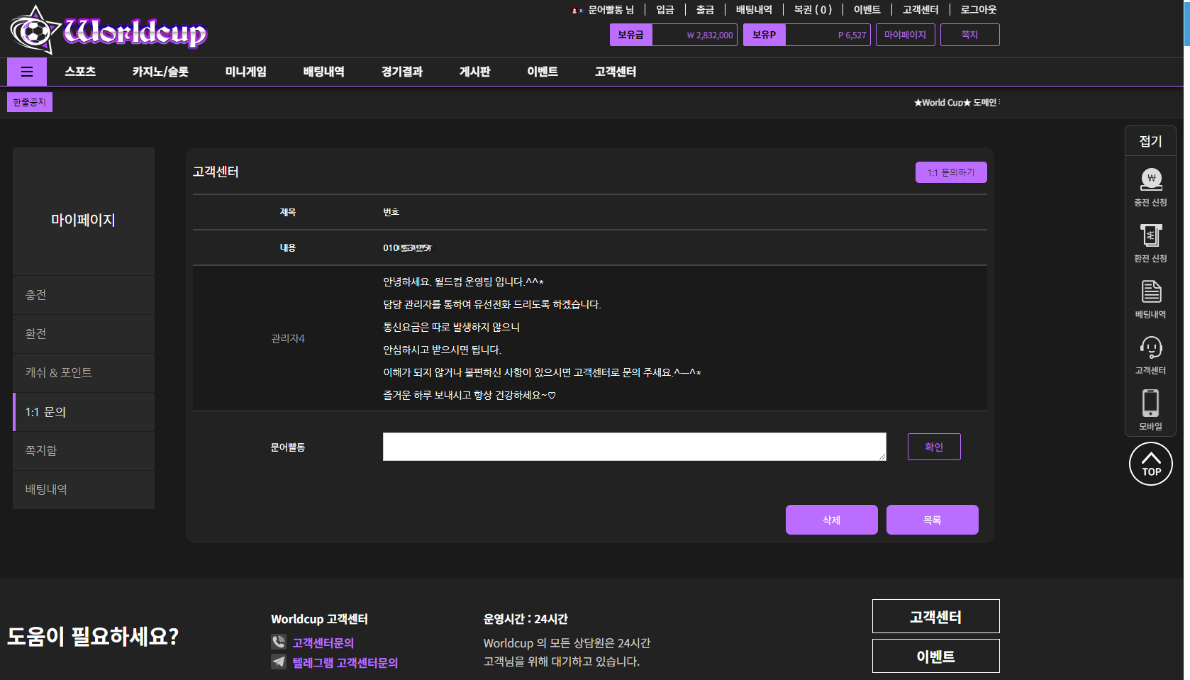 283적중되서 환치려니까 유선전화준다길래 전화받고 양방이니뭐니 개소리 지껄이길래