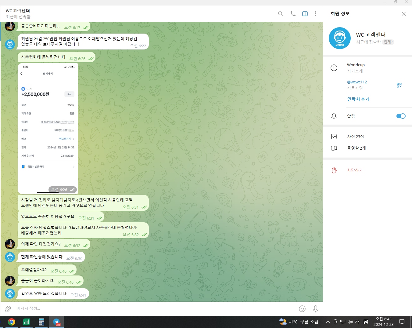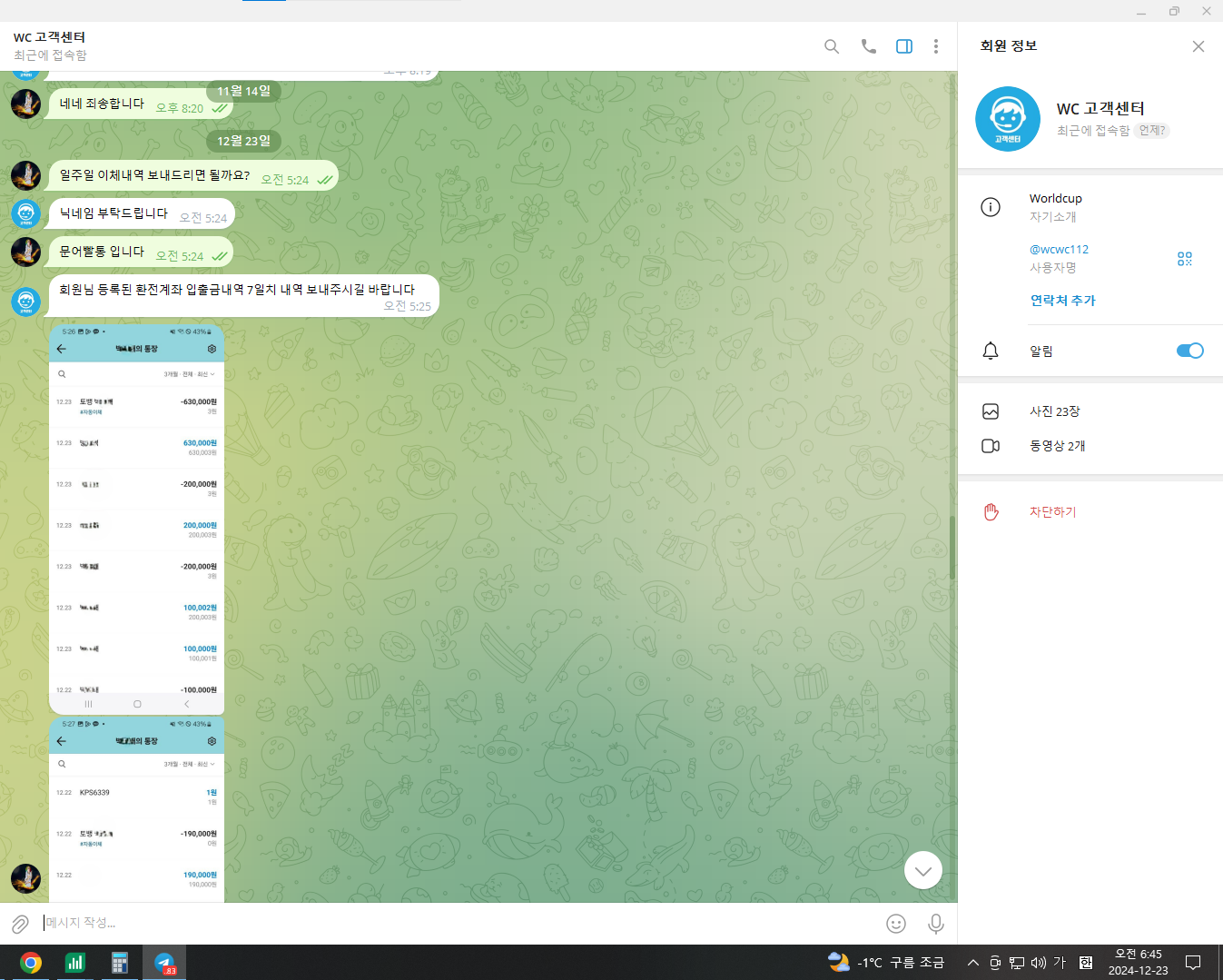 전화쳐받고 텔레로 이체내역 쳐달라길래 보내주니까 또 헛소리 꼬투리 쳐잡히는거 없으이 계속 뭐보내달라 보내달라 개염병 쳐떠네