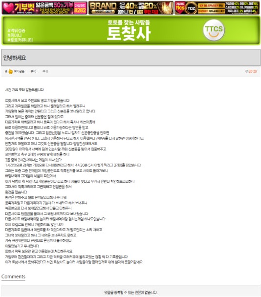 ![]() ![]() ![]() ![]() 토찾사 보증업체 쓰다가 먹튀 당하고 고객센터에 글올리고 자고 일어나보니 제글은 블라인드 처리되잇고 고객센터로 문의달라고 해서 사이트내에 고객센터에 글도 남겨도 반응이 없길래 텔레 고객센터로 연락주니 사이트 내에 고객센터로 있었던일을 보내달랍니다 그래서 보냇다고 하니 갑자기 토찾사 커뮤아이디도 짤랏네요 다른글 보다가 토찾사도 한통속 아닐까 싶었는데 혹시나가 역시나네요 보증해줄 마음 1도없었습니다 이사람들 소액이라도 저사람들이랑 대화하면 대놓고 안줄려고하는게 보여서 턱 싹다 돌아가니 조심하세요 일개 유저 1명이라고 소액유저 1명이라고 아이디 짤라버리면 그만이라고 생각하는 토찾사 그 보증업체 놀이터 또 다른 피드백있으면 다시올게요 댓글 0