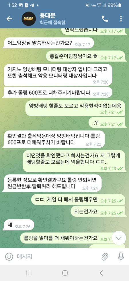 실벳 먹튀 입니다 ㅋㅋㅋ 700퍼 롤링치고 52환전하니 양방드립 치면서 600퍼 추가요구 이때도 불만 많았지만 양방 운운하면서 몰수한다 하길래 벽 이랑 대화하는거 느끼고 요구사항 이행했으나 추가롤링이후 통장내역 10일치 요구 하여서 들어줬음 통장까도 입출금이 얘네랑 말고 10일넘게 없는게 확인되었음에도 무지성 양방드립 원금만 주고 졸업시키네요 ㅋㅋㅋ 벌레 팀장은 메세지도 실수하고 저한테 보내고 그냥 ㅈ병신 사이트 이용금지요~