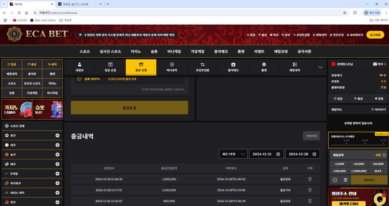 베팅의민족 보증걸려있는 에카벳 (구 에볼루션 카지노 ) 24일에 가입해서