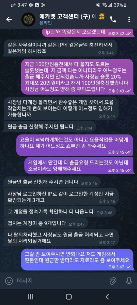 IP가 겹친다 ? 하나하나 딴지 걸면서 원금만 출금해가라고 하는데 애초에 출금해줄