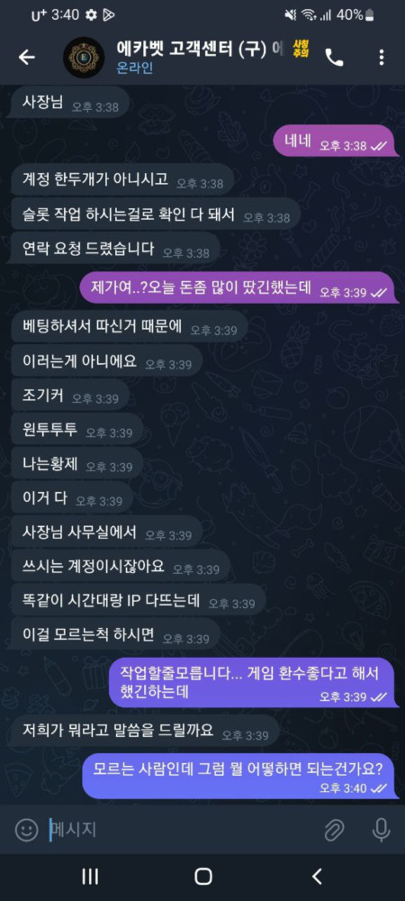 처음에 무무라인이다 이상한 말하면서 딴지들어왔는데 무무라인이라는 말 들어보지도 못했고 딴지 거는거 실패하더만 갑자기 다계정으로 이용을 했다 라고 또 영어쓰는데 제 이름 흔한 이름이라 전국에 5만명은 넘게 있을겁니다 그걸로도 안되서