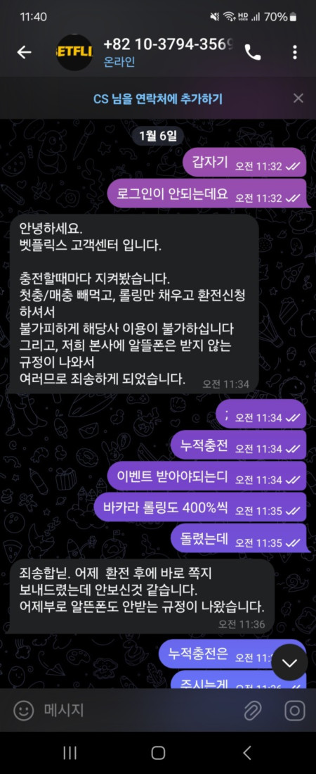 평소에 바카라 롤링 400%이상씩 돌리고 이용했습니다.