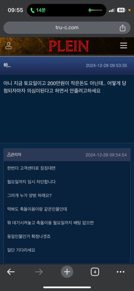 27일날 먹낫구요 30일 월요일날 총괄실장 출근하면 얘기하라더니 월요일 아침부터 연락 한통도 없다가 저녁에 문닫고 사라졋습니다 총 150충에 221만원이면 71만원 이긴건데 이정도도 못줄거면 사이트 왜합니까 억울해도 그냥 똥 밟앗다고 생각하고 넘어가려 했는데 이런식으로 텔레로 다시 영업해서 유저 끌어드리고 있네요