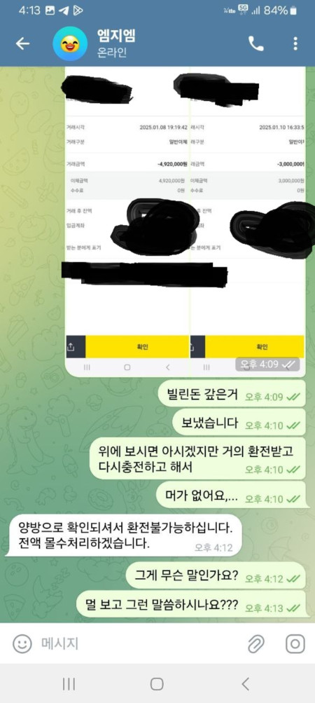 양방이라면서 환전취소후에 몰수해간다고 휴