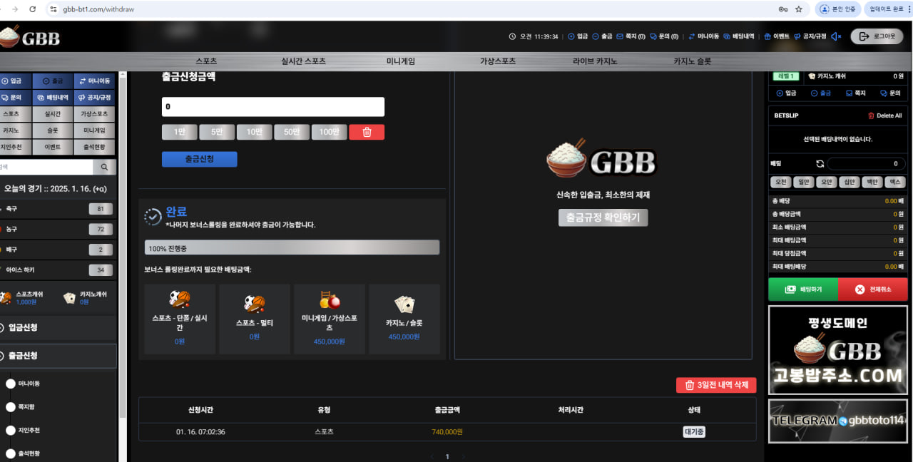 고봉밥 GBB 74만원 먹튀