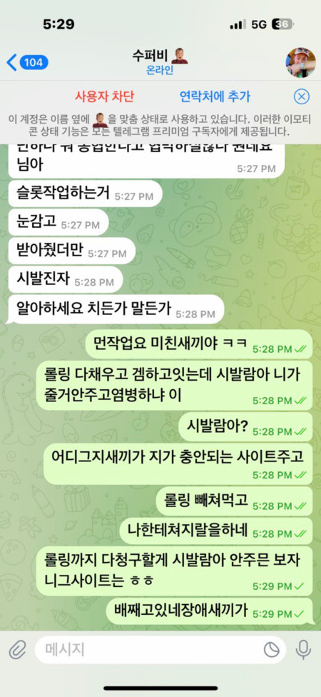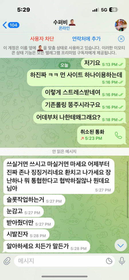 텔레그램 아주빠르게 대화 다 삭제후 차단.